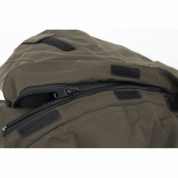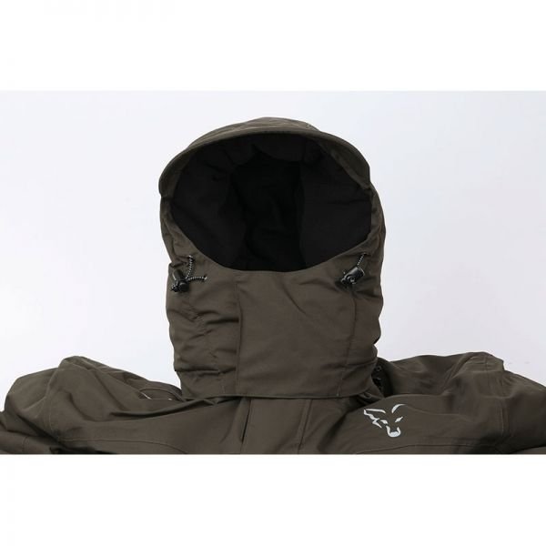 Други функционалности включват двупосочен основен цип за лесен достъп, неопренови вътрешни маншети с отвори за палец, регулируем подгъв и светлоотразителни лога на марката Fox за по-добра видимост при нощен риболов.